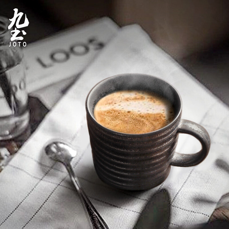 九土日式咖啡杯黑手作陶瓷复古马克杯子情侣茶杯粗陶家用办公水杯
