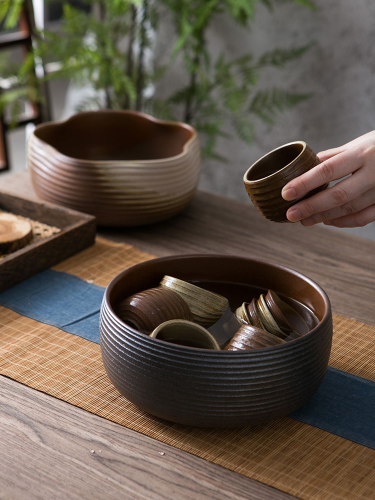 精品家用粗陶柴烧水盂茶洗缸大号加厚陶瓷茶杯陶土功夫茶具零配件
