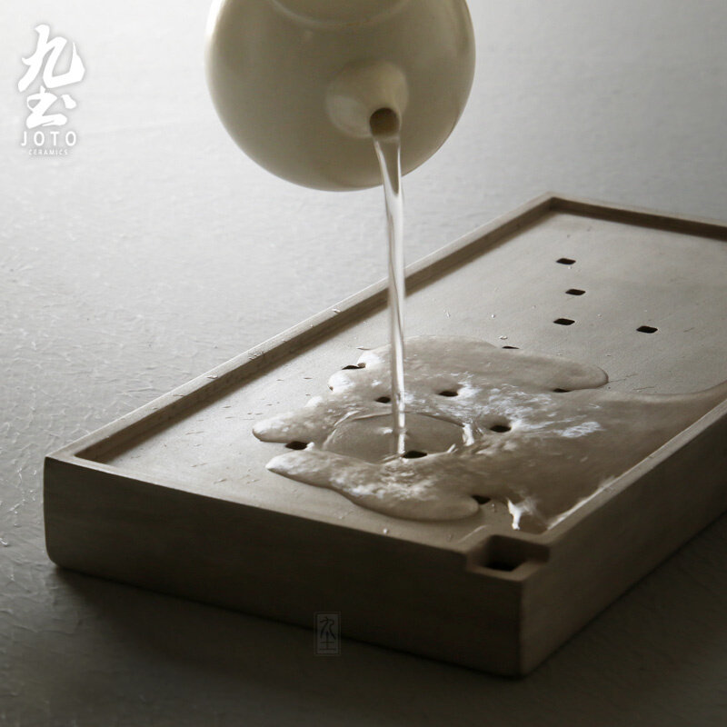 九土日式干泡茶壶承长方细陶茶杯台储水式小茶盘茶托简约功夫茶具