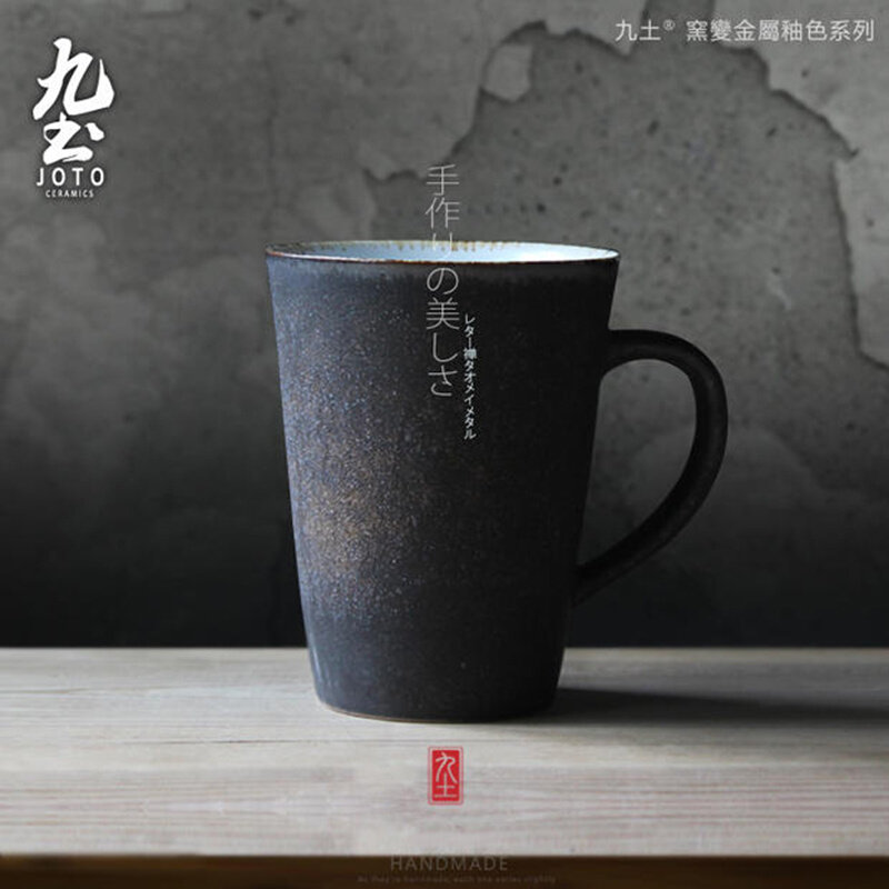 九土日式粗陶咖啡杯复古窑变马克杯家用大容量水杯办公室茶杯情侣