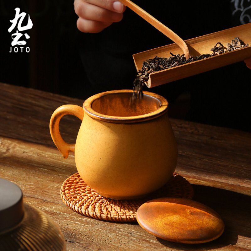 九土复古泡茶杯创意带盖马克杯办公室水杯大容量陶瓷茶水分离杯子