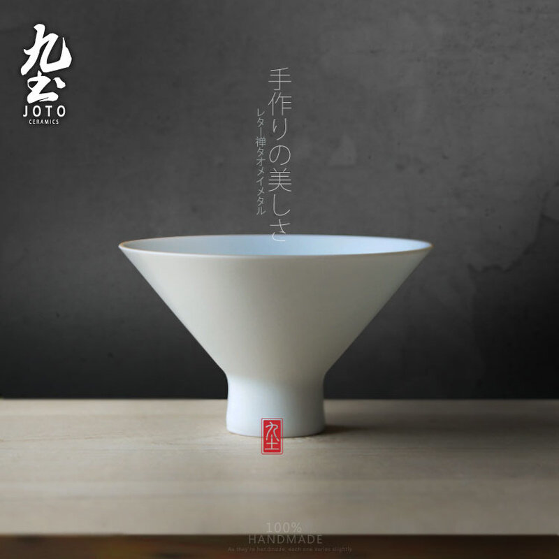 九土全手工拉坯高脚大斗笠茶杯手感细腻普洱茶盏薄胎白瓷品茗杯子