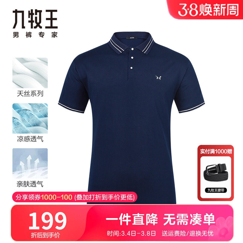 【冰爽天丝】九牧王男装冰丝短袖t恤 夏季薄款休闲亲肤冰凉polo衫