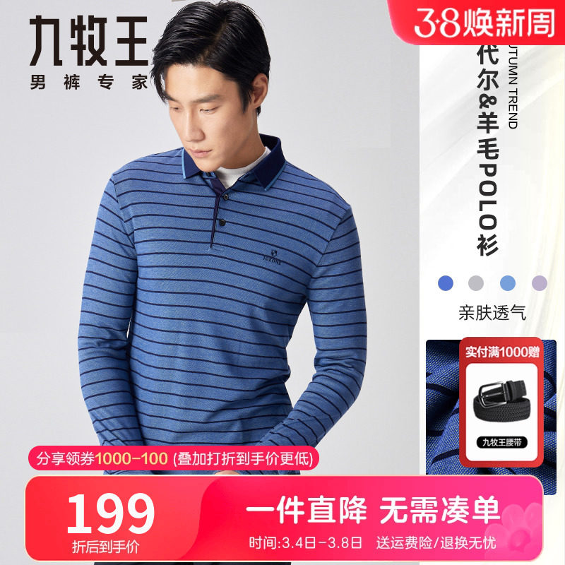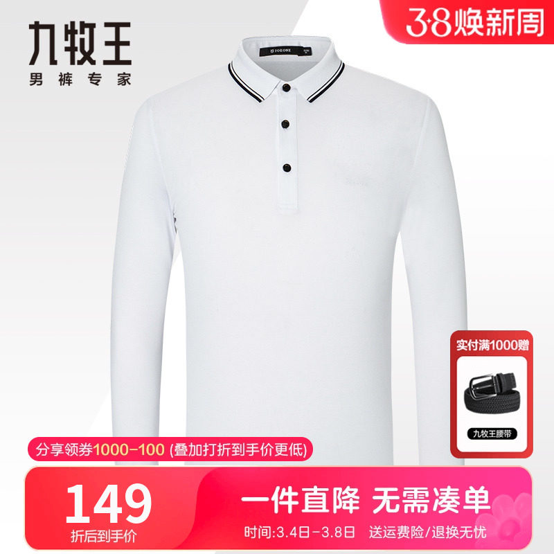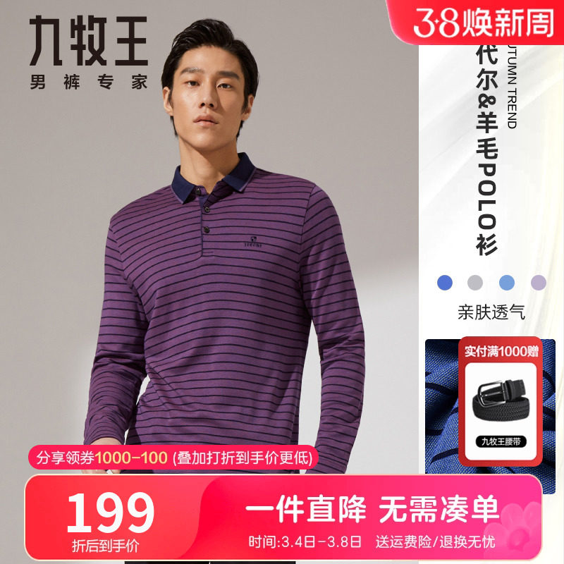 【羊毛莫代尔】九牧王长袖t恤秋季中年爸爸装柔软亲肤保暖polo衫