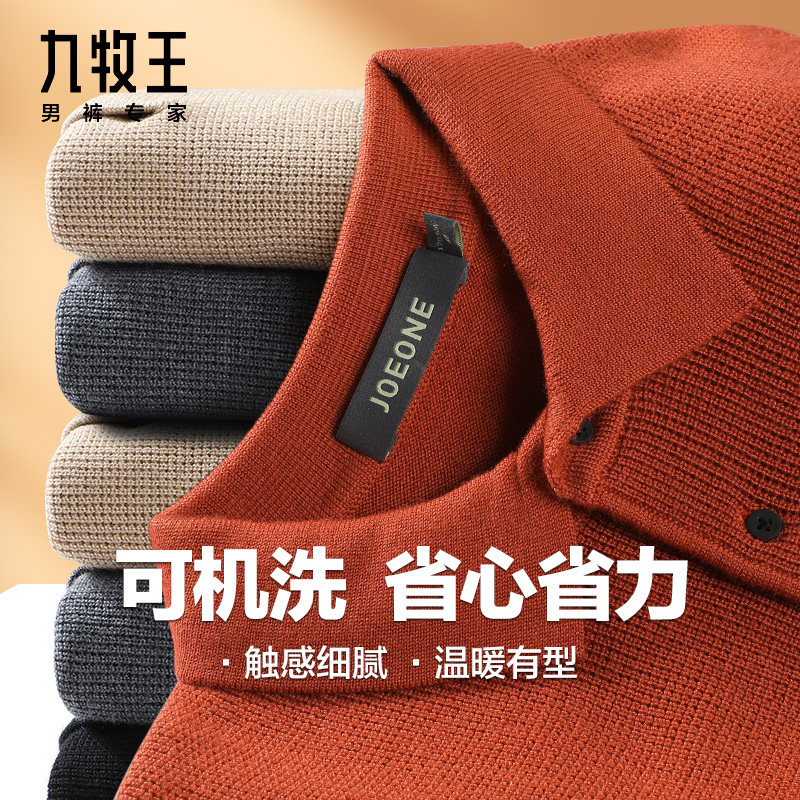 【九牧王100%纯羊毛衫-可机洗】毛衣男2023秋冬季新款翻领POLO衫