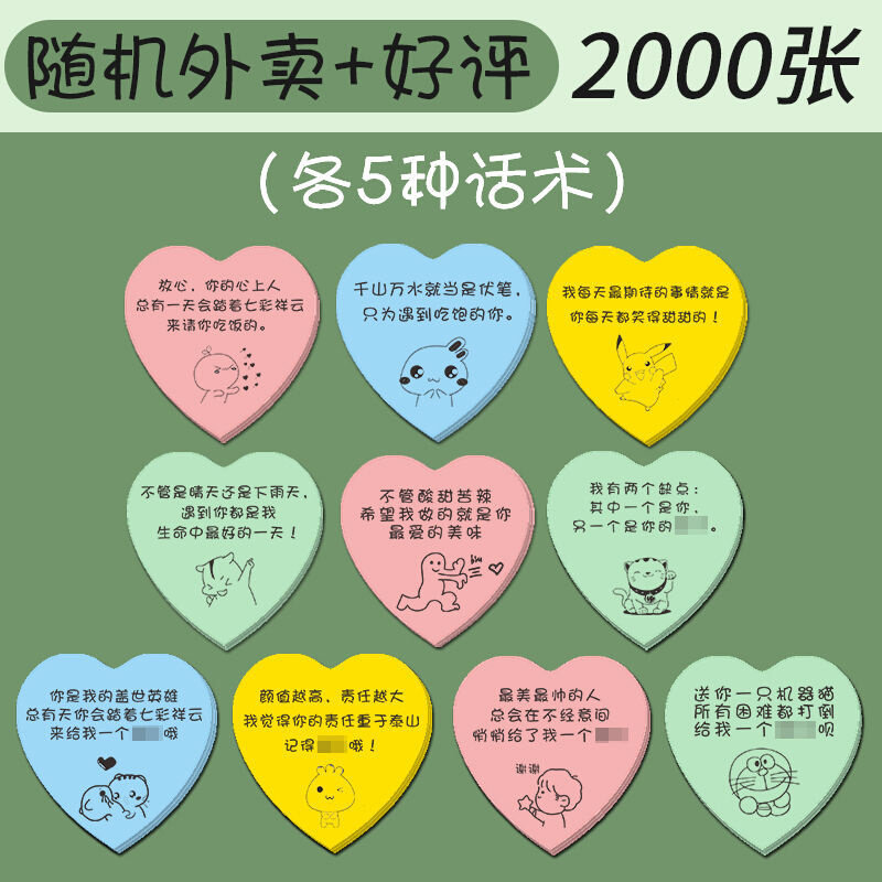 外卖便利贴奶茶贴纸定制 奶茶店暖心的提示创意手写广告便利贴定制二维码 爱心五星便签纸心形带字经久耐用
