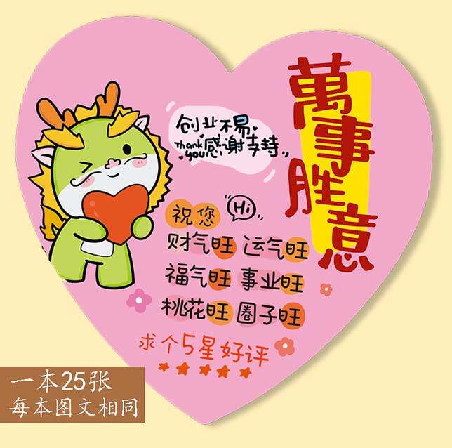 新年感谢卡外卖便利贴粘性强好评价贴纸美五星好评贴纸奶茶暖心提