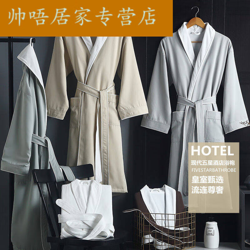浴袍情侣五星级酒店浴袍男女睡衣比吸水速干浴巾式浴衣奶茶青M衣