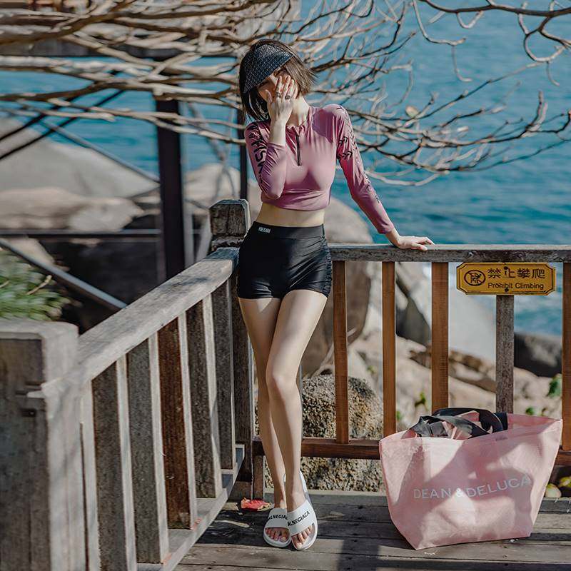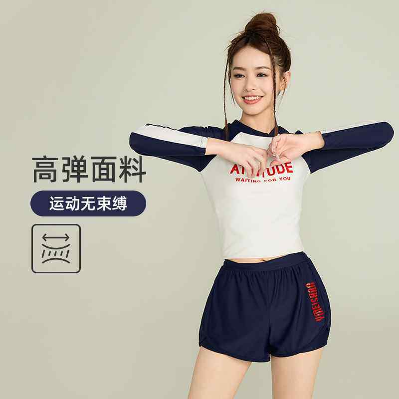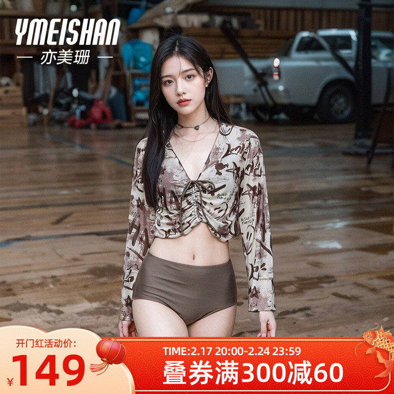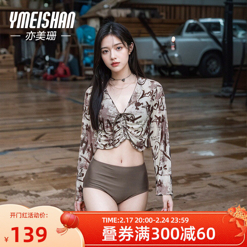 亦美珊泳衣女士泡温泉冬天遮肚保守分体2023新款长袖防晒高级泳装