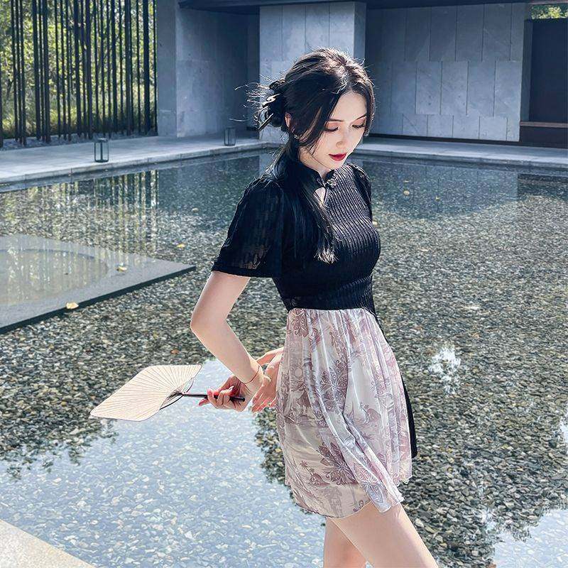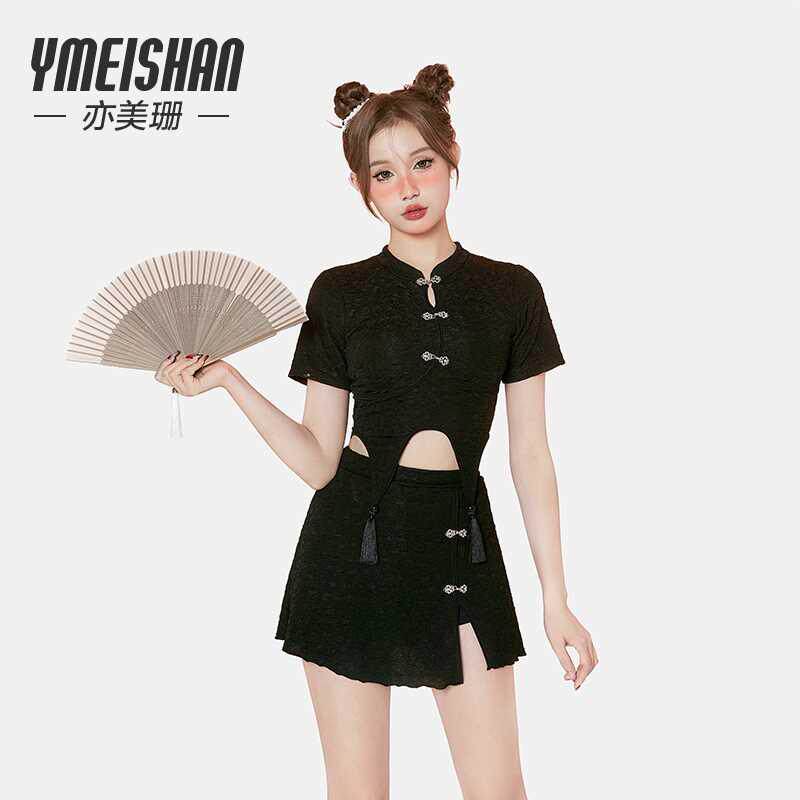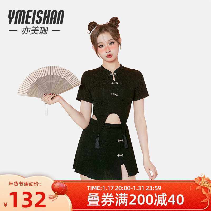 亦美珊分体泳衣女2023新款爆款黑色高级感国风保守遮肚显瘦泡温泉