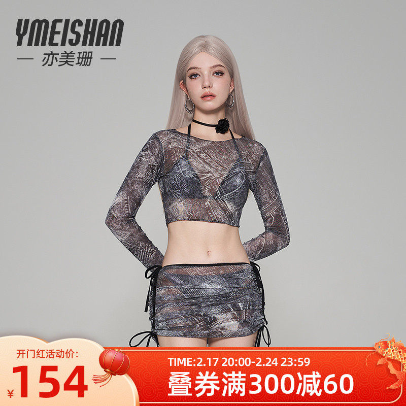亦美珊分体泳衣女泡温泉秋冬天2023新款性感海边度假比基尼四件套