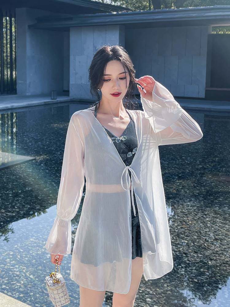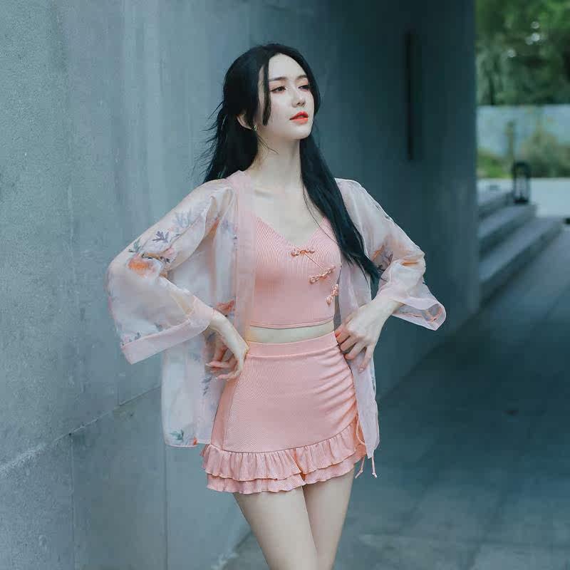 亦美珊分体泳衣女保守微胖高级感新中式海边度假三件套泡温泉冬天