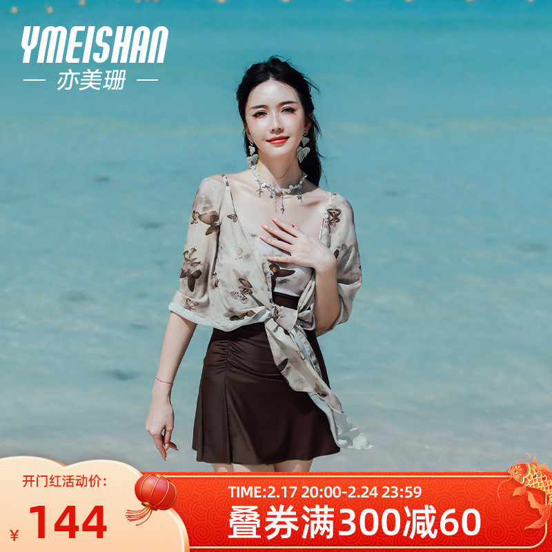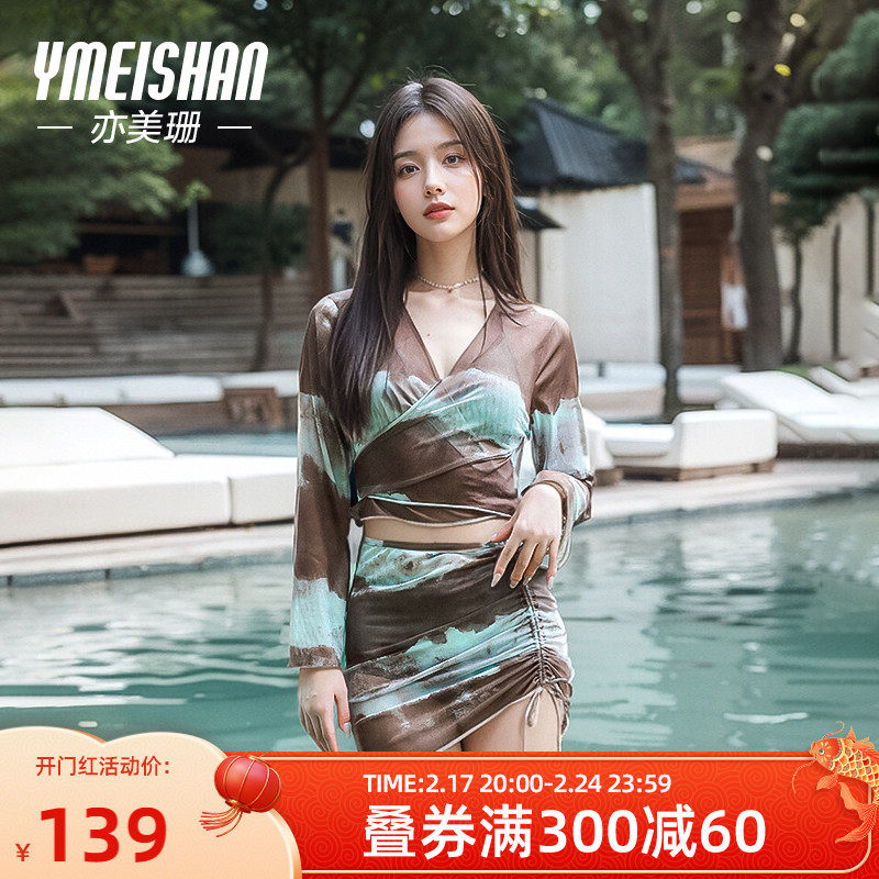 亦美珊泳衣女分体2023年新款高级感保守海报度假三件套跑温泉冬天