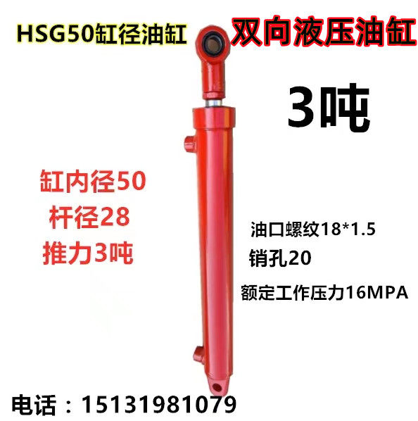 50缸径液压油缸双向液压缸升降式油顶3吨小型液压缸液压顶双耳环2