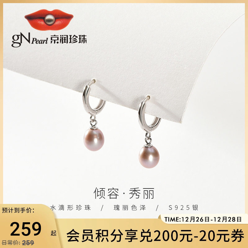 京润珍珠 倾容S925银淡水珍珠耳环6-8mm水滴形优雅款送妈妈礼物D