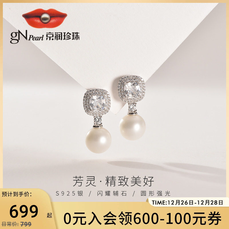京润珍珠芳灵淡水珍珠耳钉10-11mm圆形千金风耳环高级感耳饰女A*P