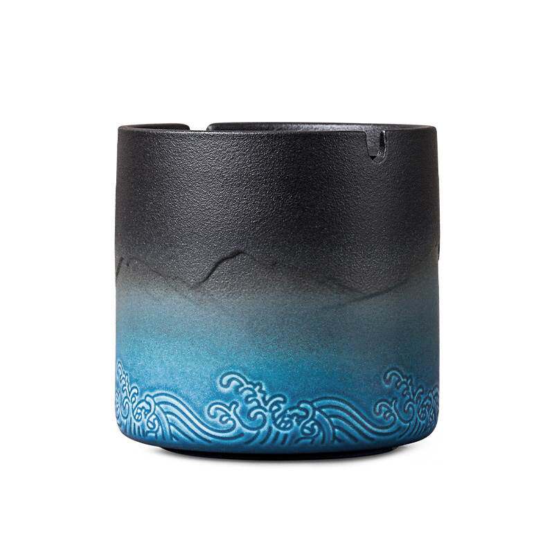 伊文陶瓷烟灰缸防烟味创意家用客厅日式简约防飞灰烟缸办公室大号
