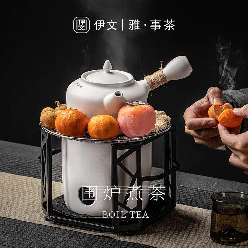 伊文陶瓷电陶炉围炉煮茶电炉烧水套装室内冬日烤茶炉家用煮茶器壶