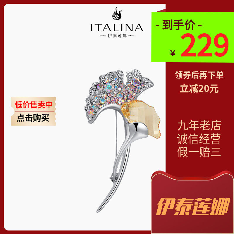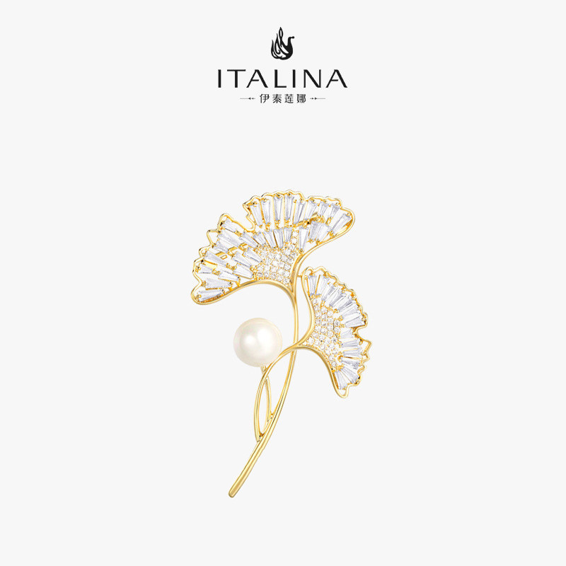 伊泰莲娜胸针女 月光银杏时尚叶子胸花饰品大衣别针 优雅节日礼物