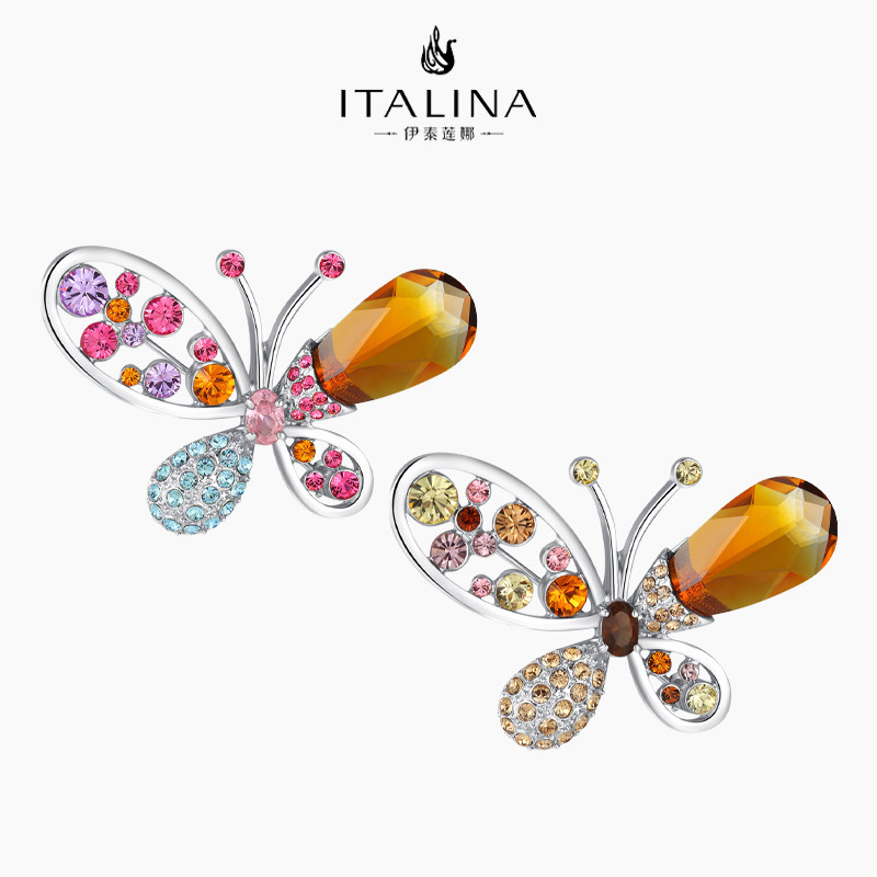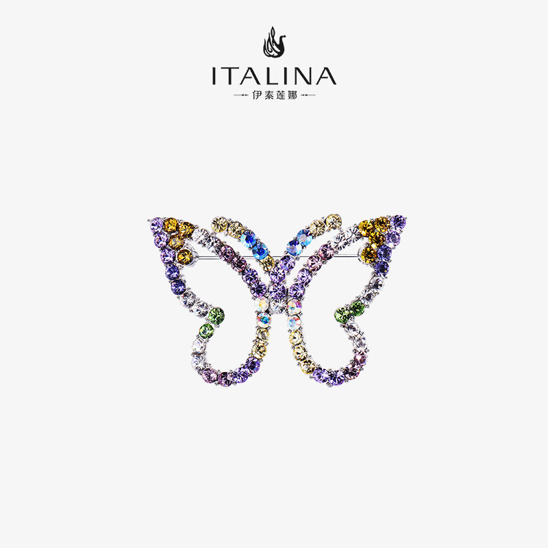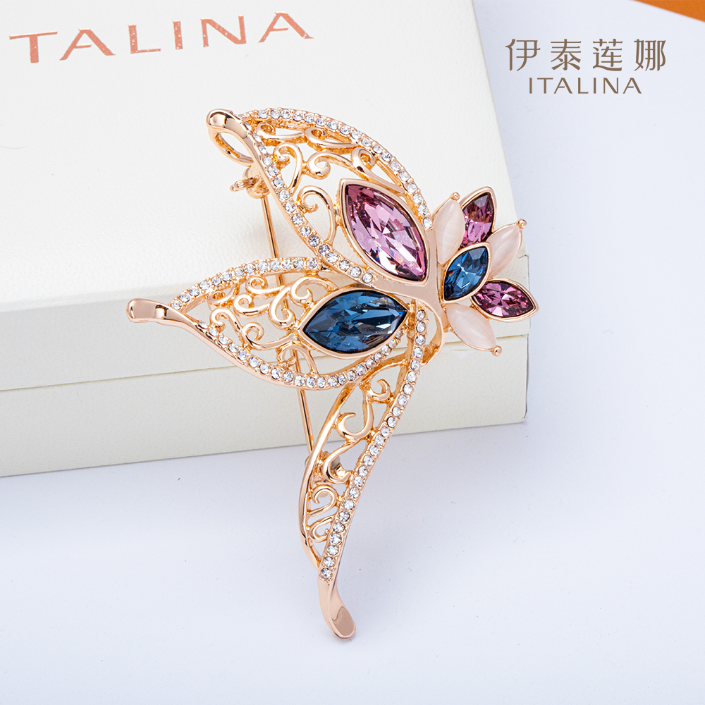 彩蝶新款水晶胸针大衣外套别针胸花 女 高级感服饰品 伊泰莲娜