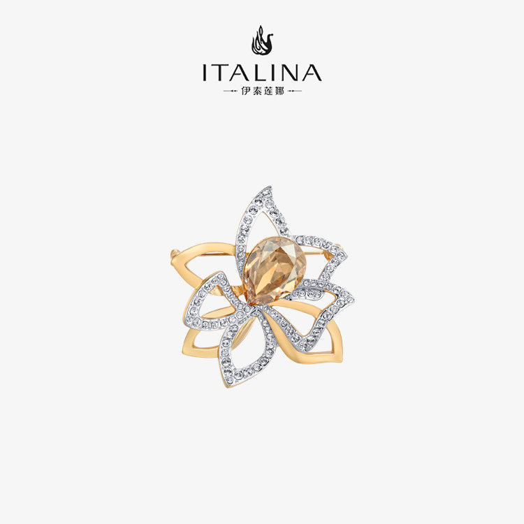 礼盒装 伊泰莲娜杏运相伴仿水晶胸针女大衣配饰扣针胸花西装别针