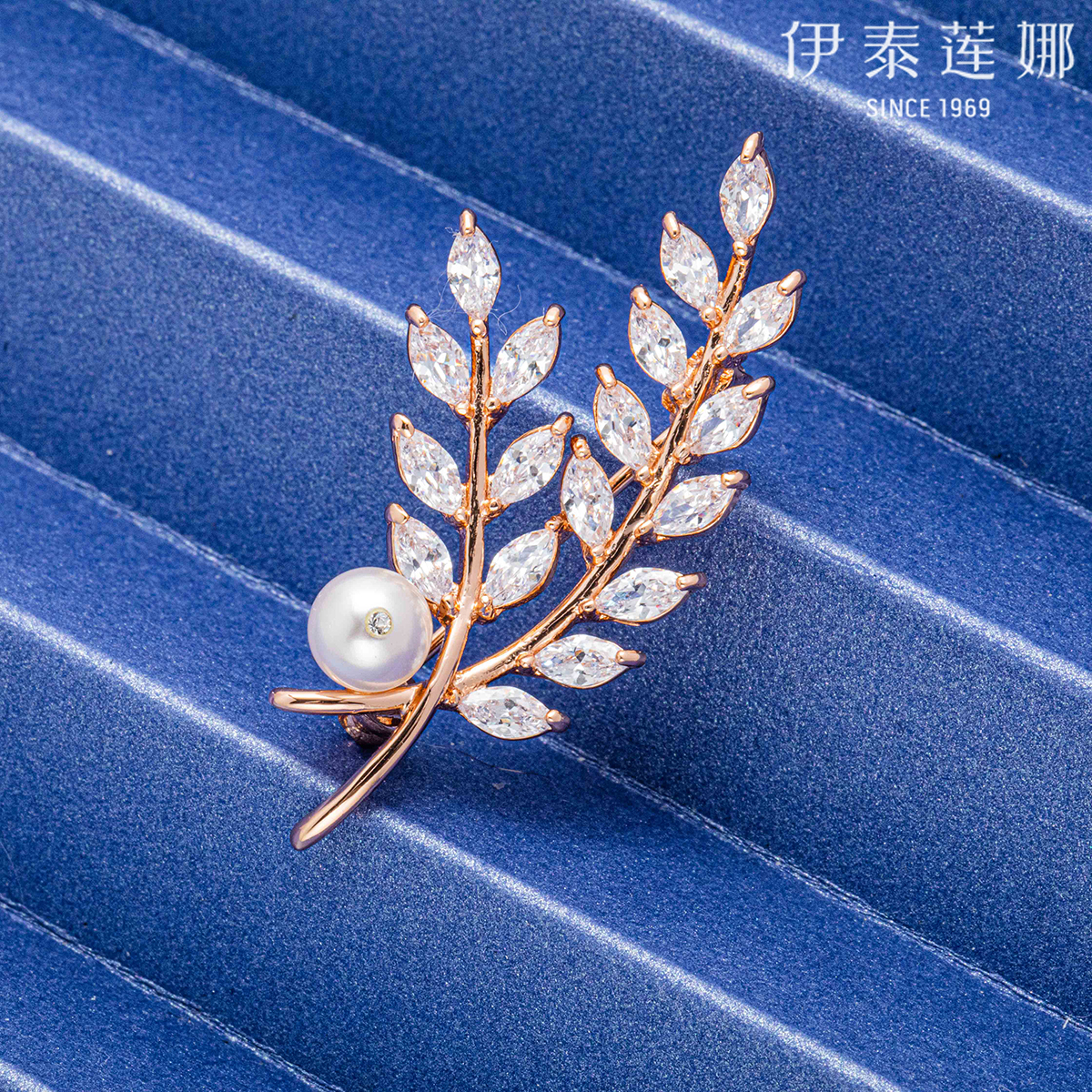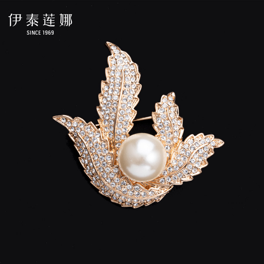 伊泰莲娜杏叶仿水晶金色胸针女大衣配饰别针珍珠胸花生日节日礼物