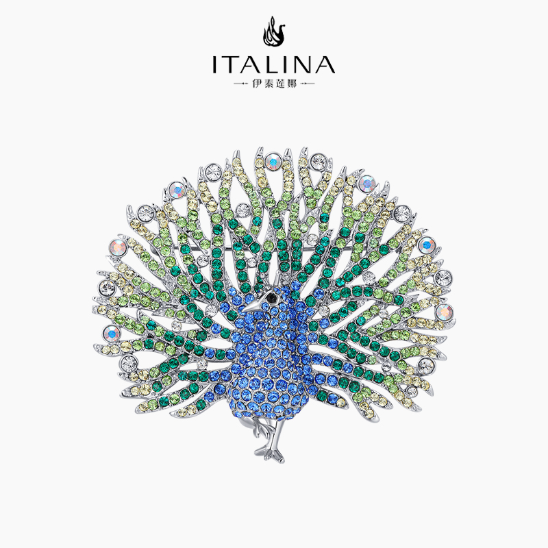 【品牌直供】伊泰莲娜孔雀胸针复古气质优雅大衣毛衣开衫别针配饰