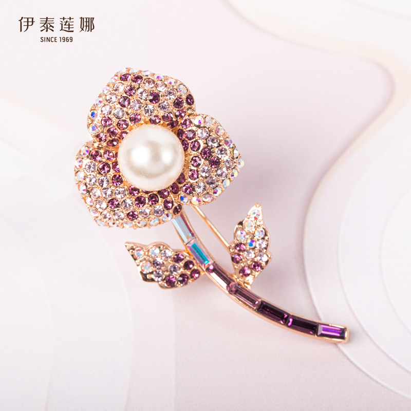伊泰莲娜正品披肩外套别针紫罗兰水晶胸花大衣毛衣胸针女 618
