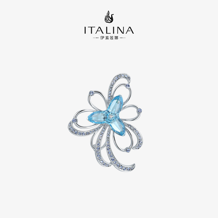 伊泰莲娜胸针高档女胸花别针西装蓝色花朵正装毛衣大衣配饰爆款
