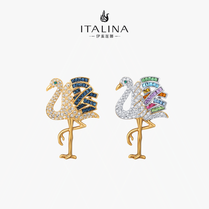 伊泰莲娜高档胸针女鸵鸟胸花双色别针大衣毛衣配饰节日母亲节礼物
