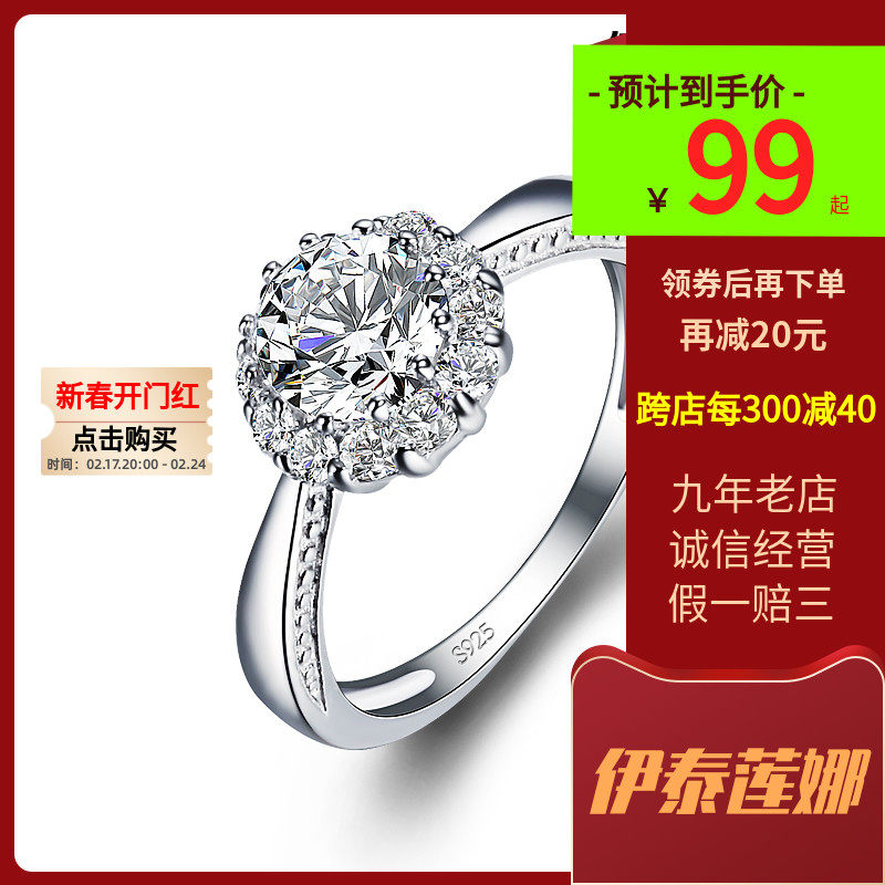 伊泰莲娜925银戒指女情侣对戒圈简约指环饰品 38节礼物送女朋友