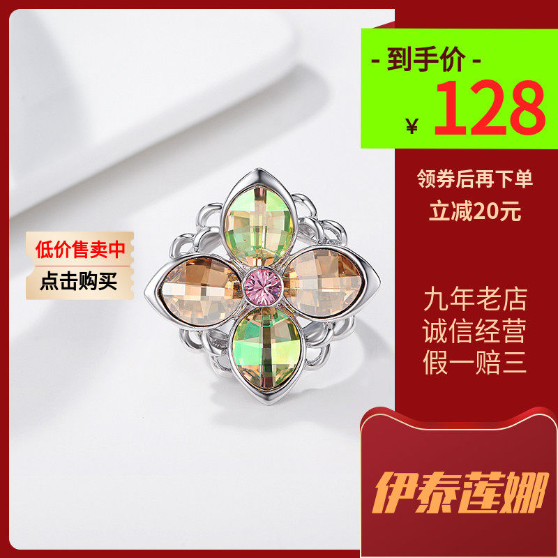 伊泰莲娜仿水晶戒指女日韩夸张食指戒时尚个性百搭戒指38节礼物
