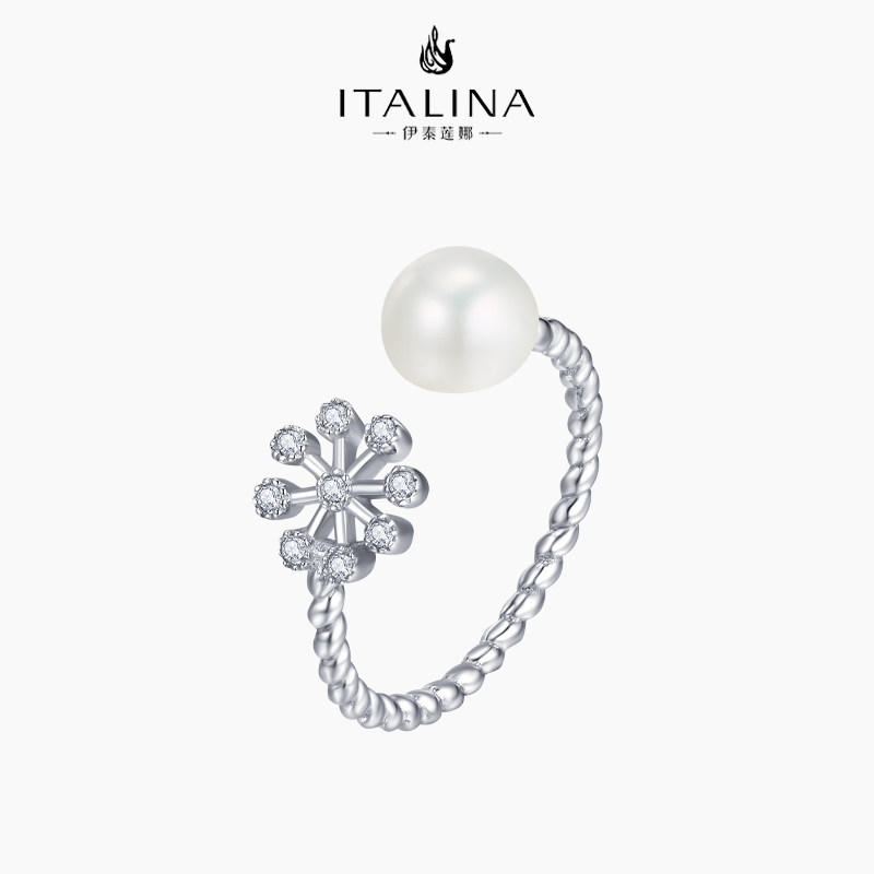 伊泰莲娜淡水珍珠戒指女春夏轻奢925银开口戒小众设计感食指戒手