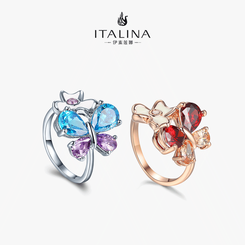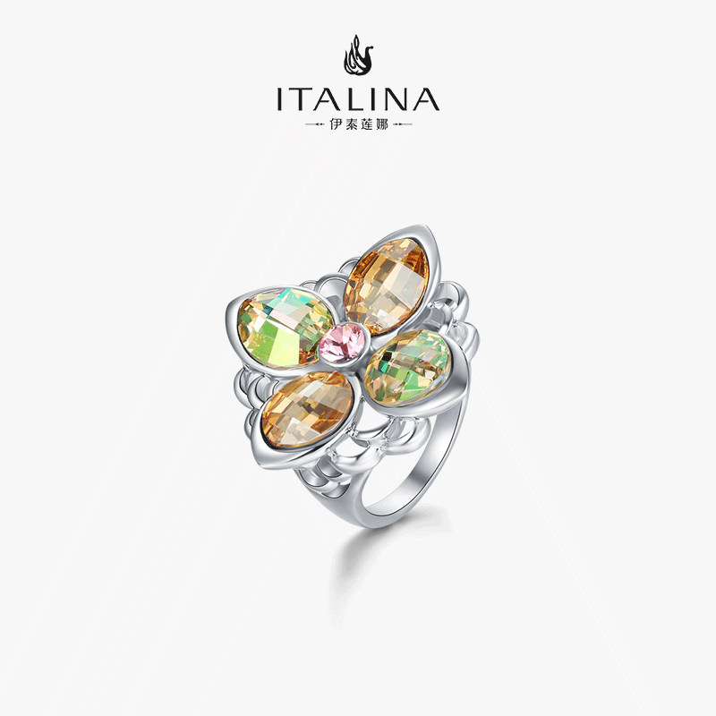 【礼盒包装】伊泰莲娜饰品花蝴蝶女戒指夸张设计指环夏天花朵元素