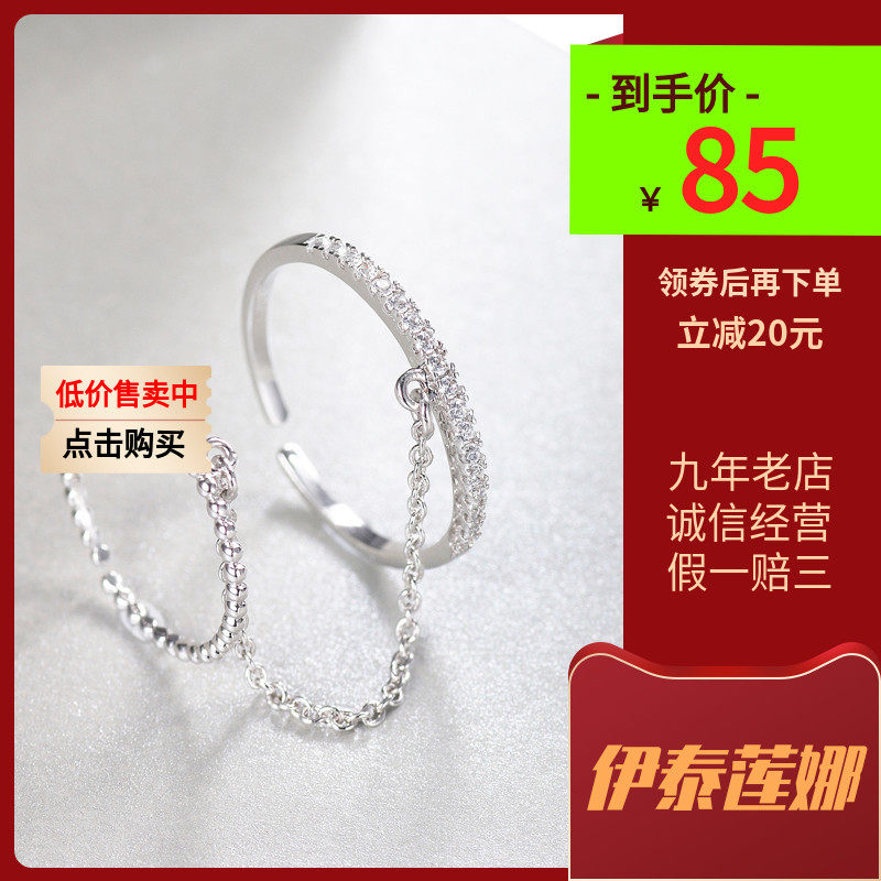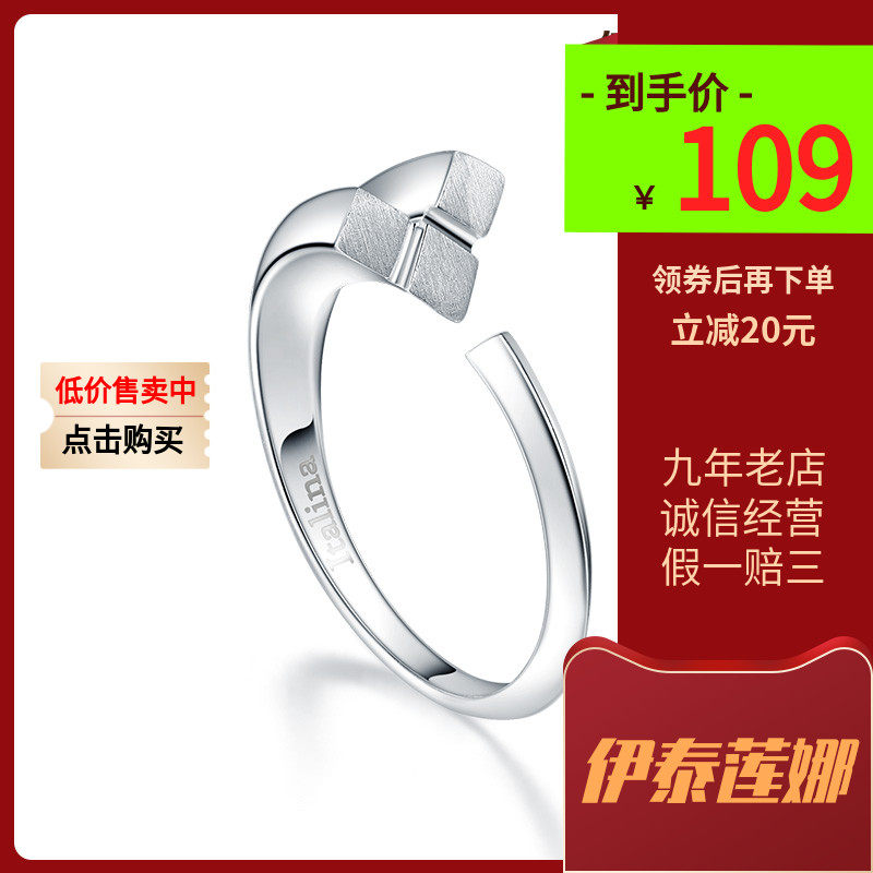 【礼盒包装】伊泰莲娜S925银开口戒指印心情侣对戒可调节大小男女