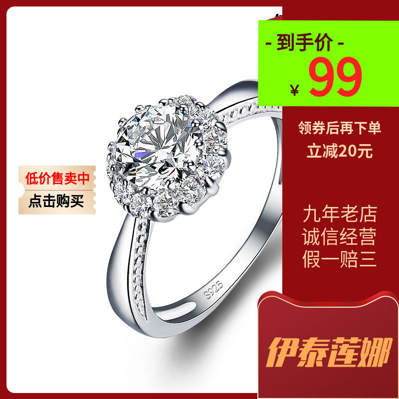 伊泰莲娜正品逆光925纯银戒指 饰品 天然锆石单指环 女