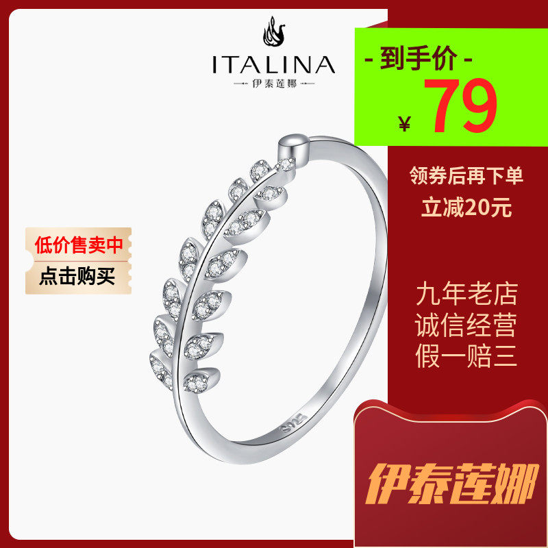 伊泰莲娜S925银戒指简约叶子开口戒时尚女个性INS简约纯银食指戒