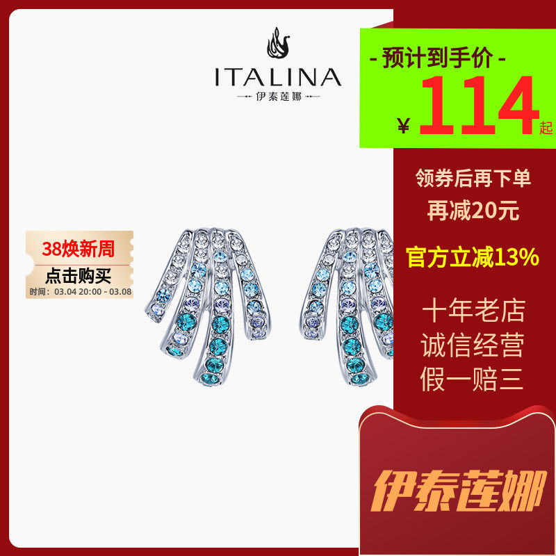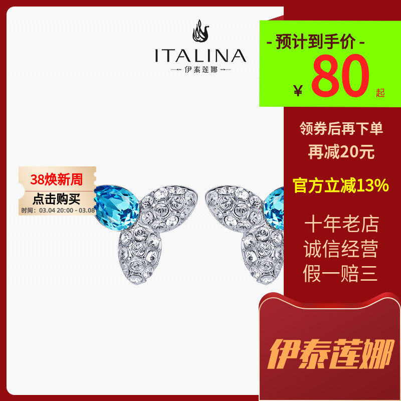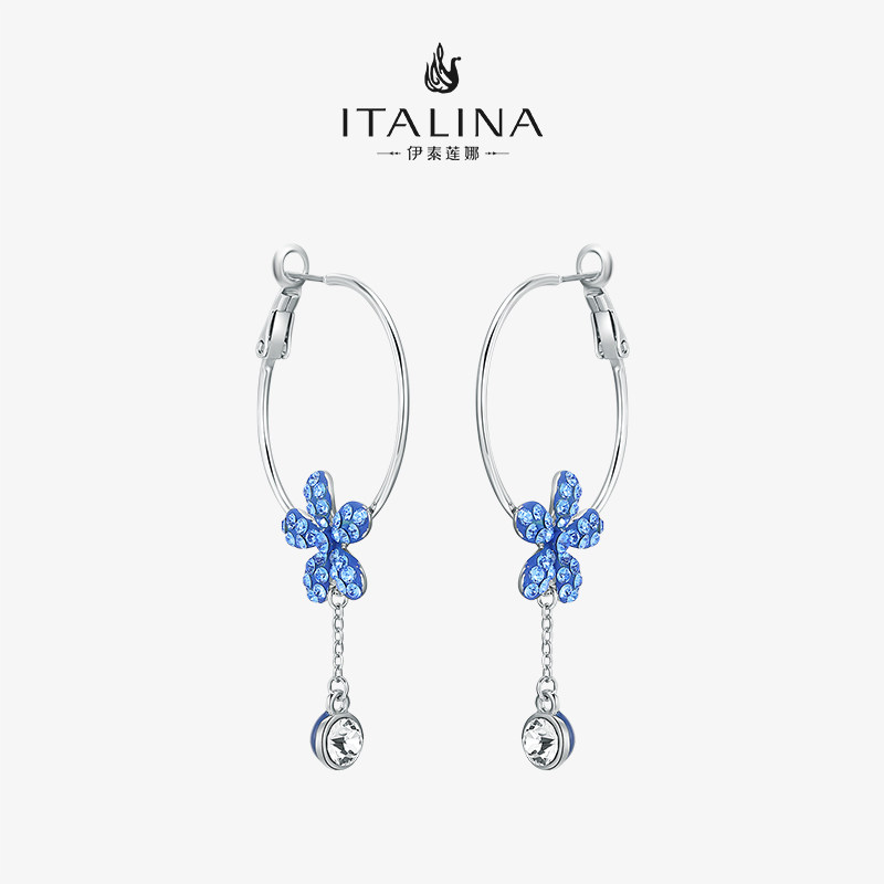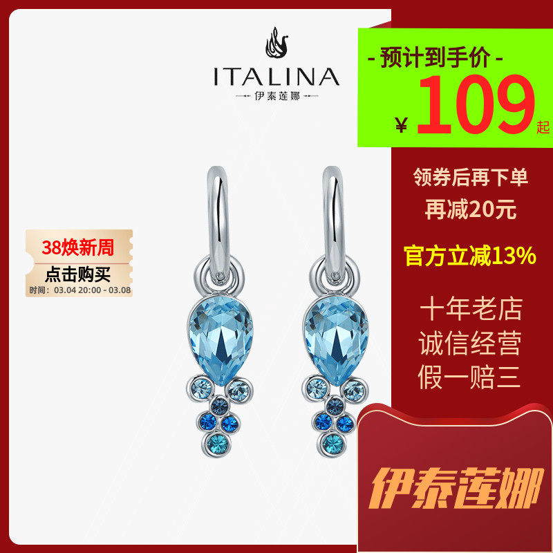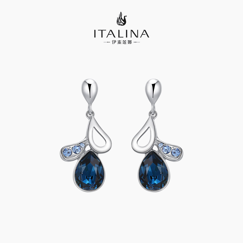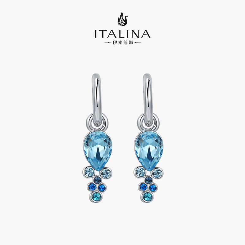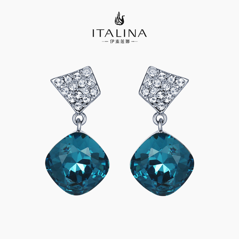 伊泰莲娜ialina高级耳环女仿水晶蓝色耳钉夏季小众银针耳饰