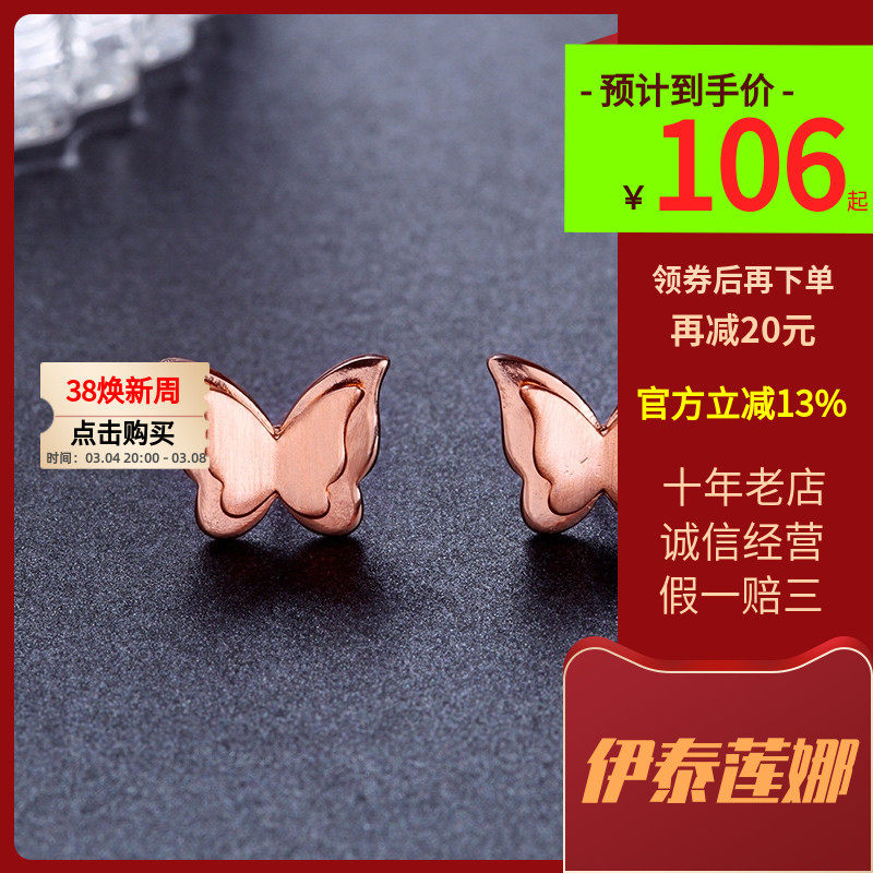 【礼盒包装】伊泰莲娜小清新简约时尚气质女不对称耳环蝴蝶耳钉潮