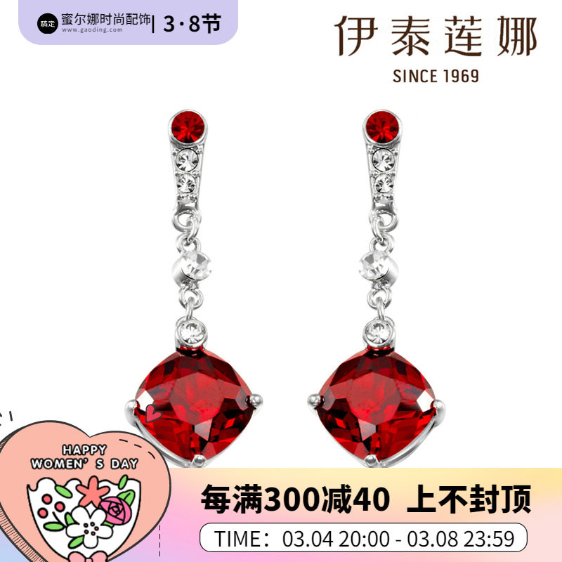 红色激情红水晶耳环女防过敏高级感耳钉 本命年送人礼物 伊泰莲娜