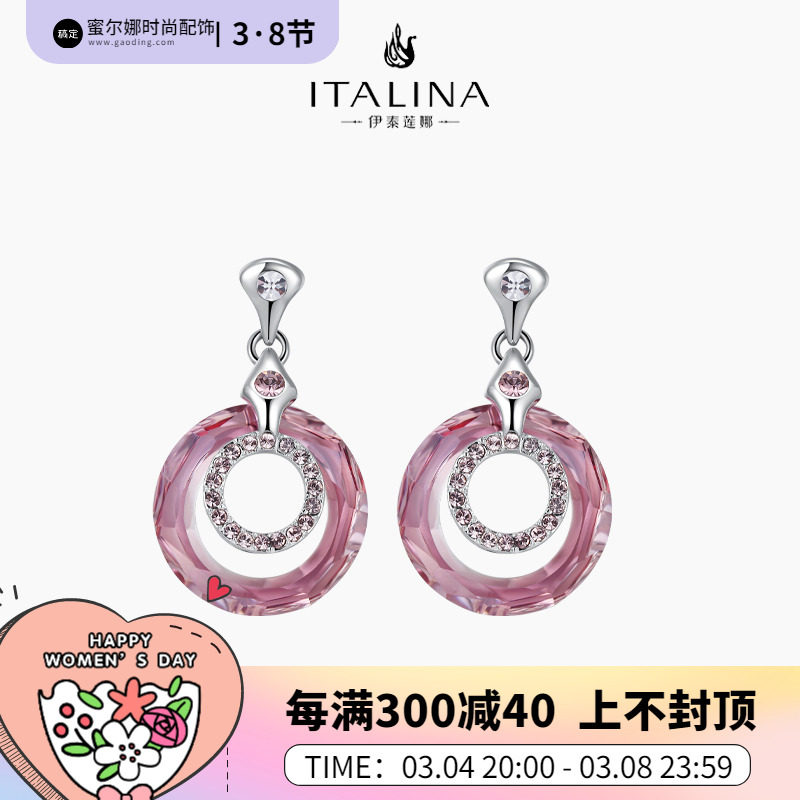 【礼盒包装】伊泰莲娜耳环粉色渐变仿水晶耳钉优雅耳饰配饰送女友