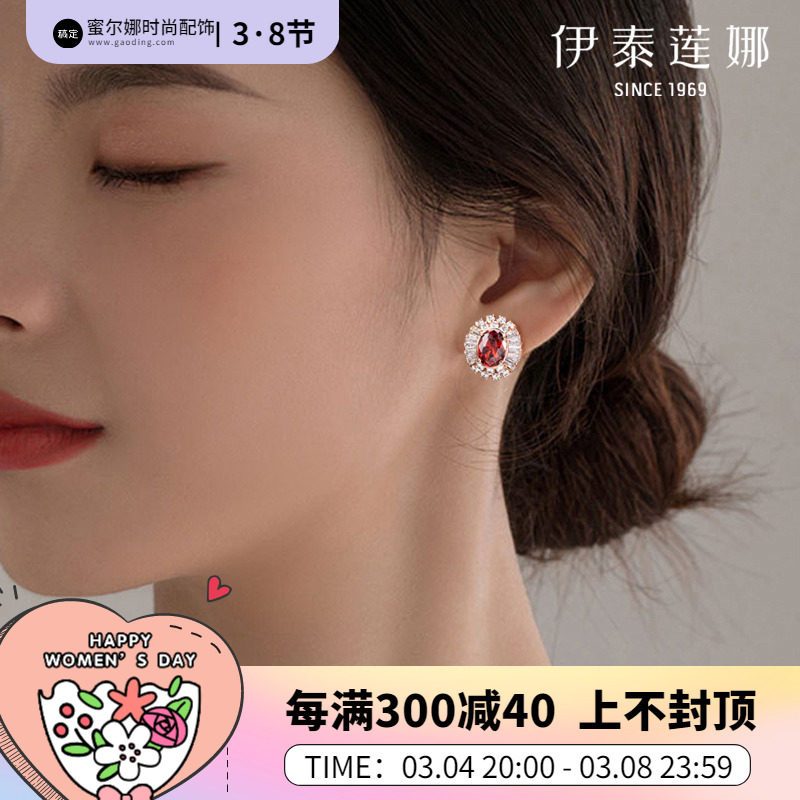 轻奢红宝石锆石耳钉/耳夹 两款选耳坠金色耳饰品耳环 女 伊泰莲娜