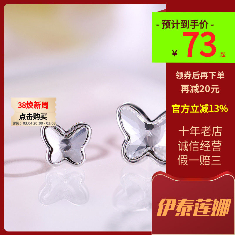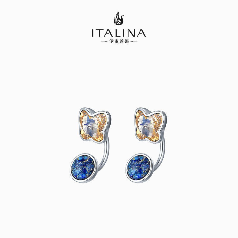 伊泰莲娜个性女蝴蝶耳钉 设计感仿水晶前后戴耳坠 生日礼物送闺蜜