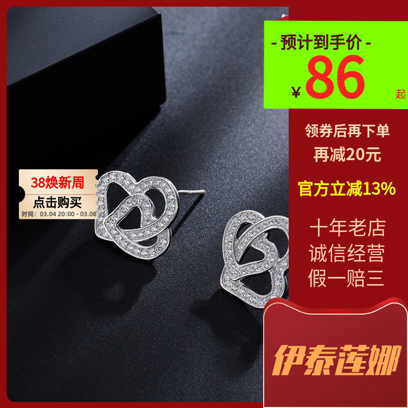 伊泰莲娜[情人节礼物]耳饰女爱心耳钉心形耳环S925银不易过敏耳饰