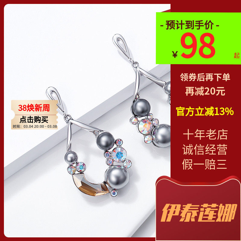 伊泰莲娜梦缘耳环女仿水晶个性新潮简约耳钉精致宴会配饰气质时尚