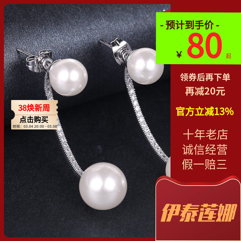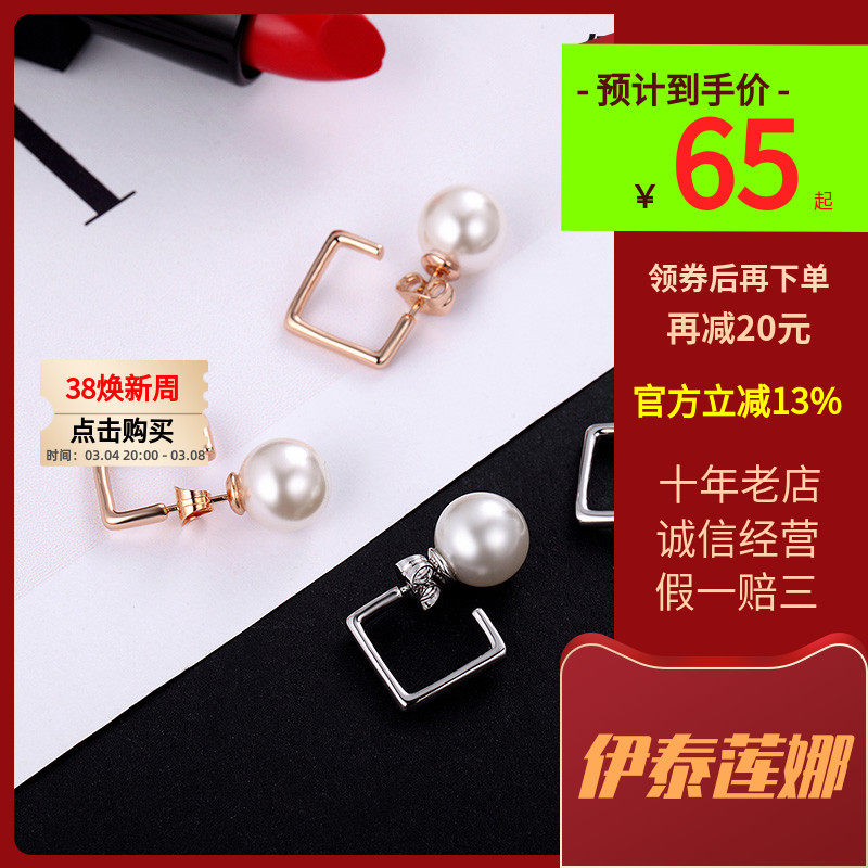 【清仓特卖】伊泰莲娜仿珍珠耳环双戴耳饰个性简约创意潮人耳钉女