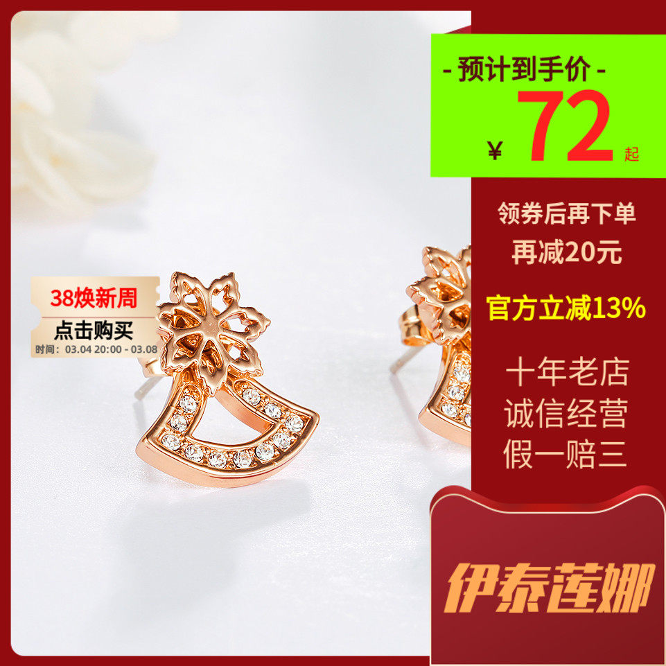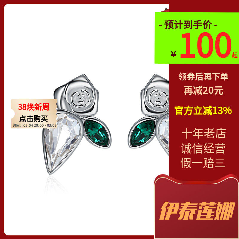 【礼盒包装】伊泰莲娜S925银耳钉女简约仿水晶个性气质玫瑰花耳饰
