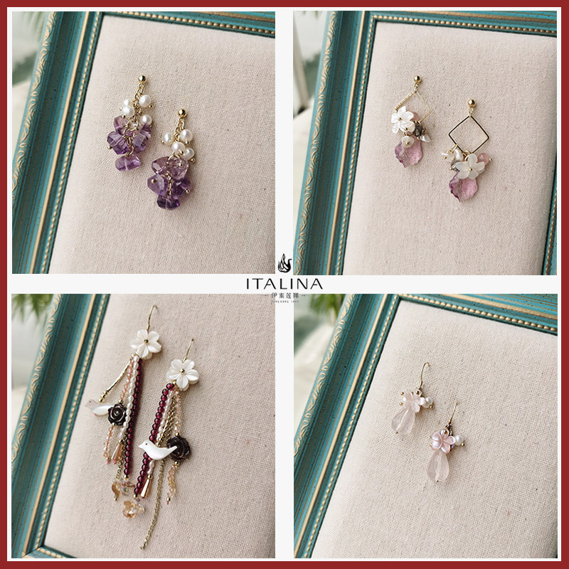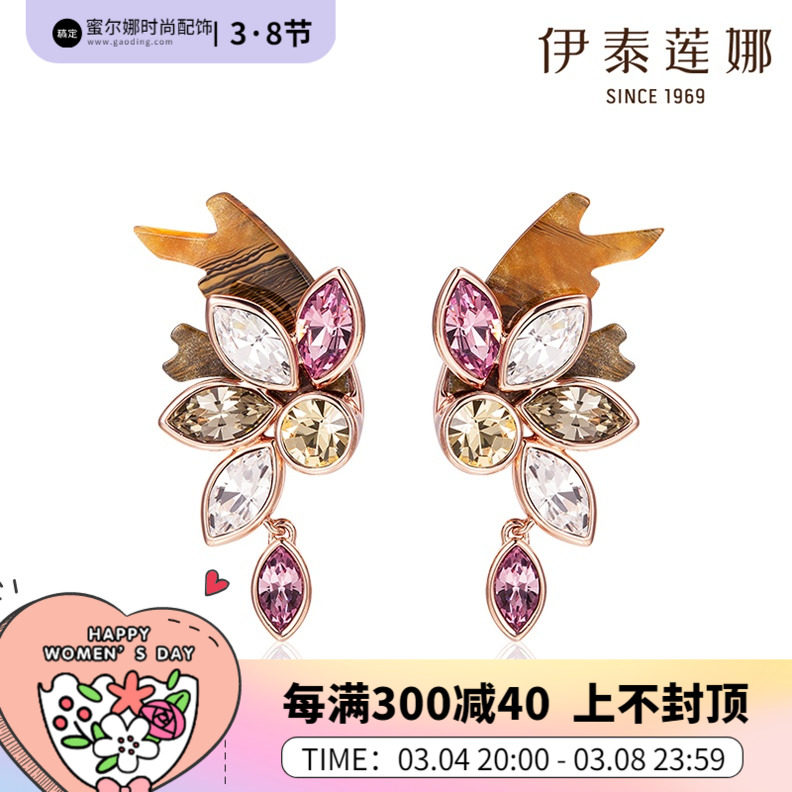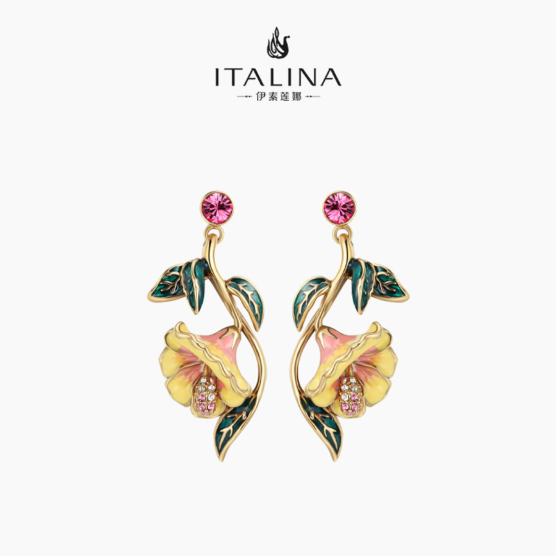 伊泰莲娜森系田园超仙气质花朵耳环耳坠仿水晶珐琅耳钉耳针