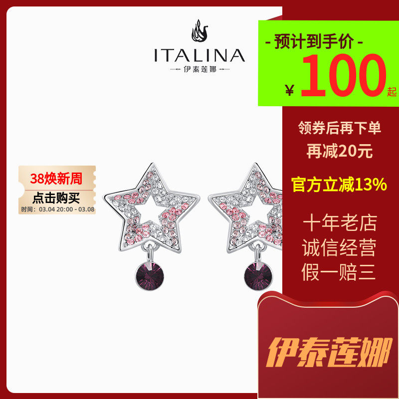 伊泰莲娜耳环女仿水晶个性新潮简约耳钉精致紫魅系列配饰气质时尚