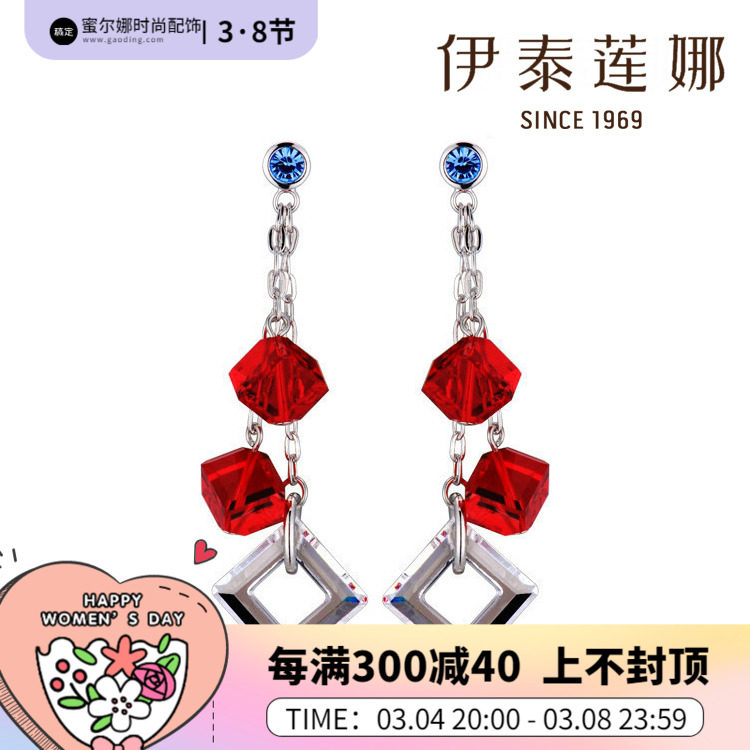 红色空间水晶耳环 高级感流苏长款耳饰防过敏耳钉 女 伊泰莲娜